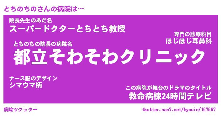 | ファンタジー風あだ名 | 『トチフェル』『エターナルトチノチノー』 |