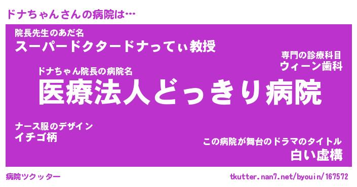 | ファンタジー風あだ名 | 『ドナフェル』『エターナルドナチャンー』 |
