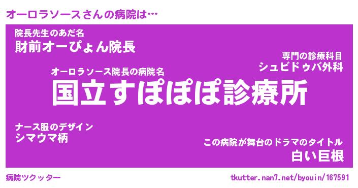 | 女子向けラノベタイトル風あだ名 | 『(仮)オーロラソースのやんごとなき事情』 |