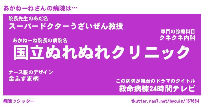 | 欧米人風あだ名 | 『マイケルあかねーね』 |