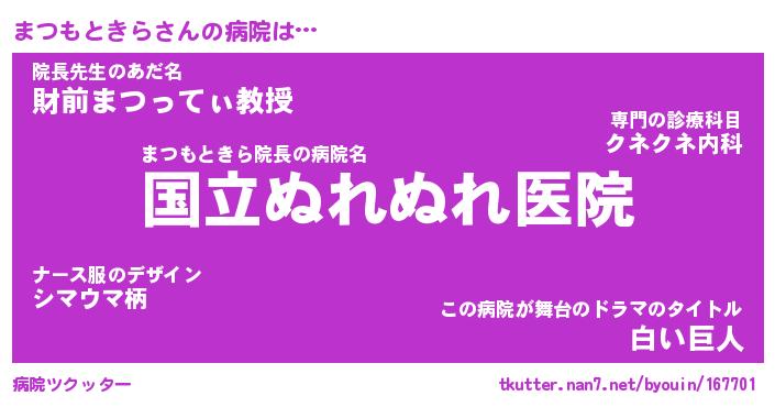 | 胡散臭い通販商品みたいなあだ名 | 『必ず成功する霊験あらたかなお札…その名も「まつもときら」』 |