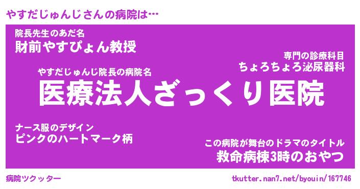 | 恥ずかしいあだ名 | 『プリティーやすだじゅんじ』『やすちん』 |