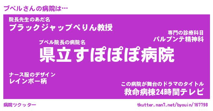 | ヘコむあだ名 | 『ブペもー』『豆乳』『ブペぷりん』 |