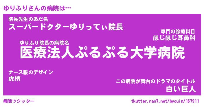 | 意味不明あだ名 | 『ペロリンゆりふり』『永久保存ゆりふり』 |
