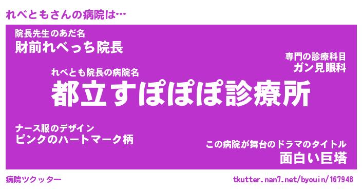 | ヘコむあだ名 | 『れべもー』『酢こんぶ』『れべ太郎』 |