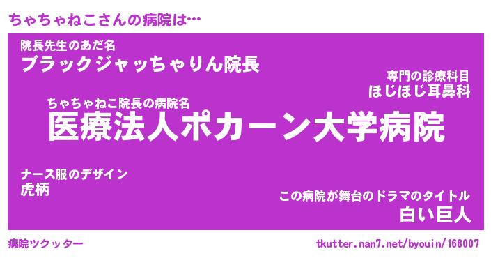 | ヒーロー風カッコイイあだ名 | 『スーパーチャチャネコ』『幻影騎士チャ』 |