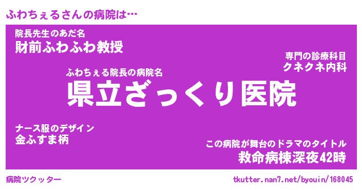 | ファンタジー風あだ名 | 『フワフェル』『エターナルフワチェルー』 |