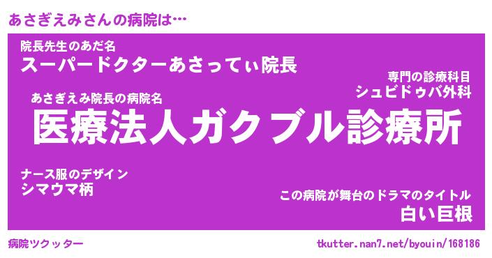 | ヘコむあだ名 | 『あさにゅー』『つくし』『あさを』 |