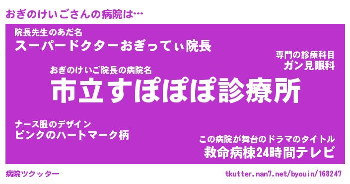 | 伝説のあだ名 | 『伝説のスナイパーおぎのけいご』 |
