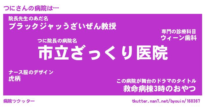 | ヘコむあだ名 | 『つにっふぃ~』『なまこ酢』 |