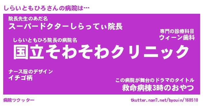 | 胡散臭い通販商品みたいなあだ名 | 『必ず成功する水晶球…その名も「しらいともひろ」』 |