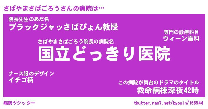 | 胡散臭い通販商品みたいなあだ名 | 『必ず成功する霊験あらたかなお札…その名も「さばやまさばごろう」』 |
