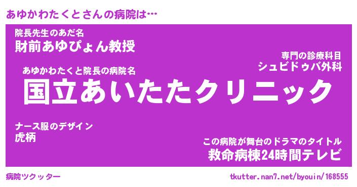 | 伝説のあだ名 | 『伝説のスナイパーあゆかわたくと』 |