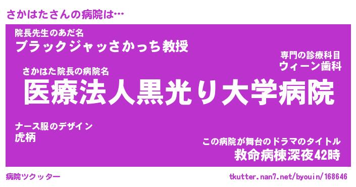 | 意味不明あだ名 | 『ペロリンさかはた』『永久保存さかはた』 |