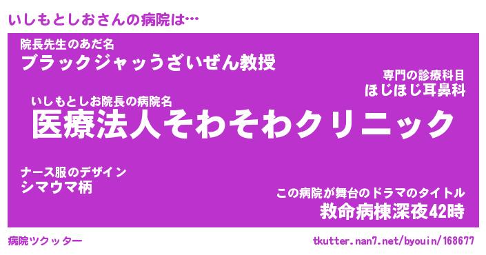 | 肩書あだ名 | 『いしもとしおCEO』『いしもとしお団長』 |