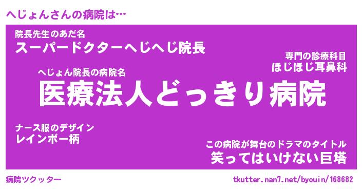 | 意味不明あだ名 | 『ペロリンへじょん』『永久保存へじょん』 |