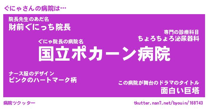 | 女子向けラノベタイトル風あだ名 | 『(仮)ぐにゃのやんごとなき事情』 |