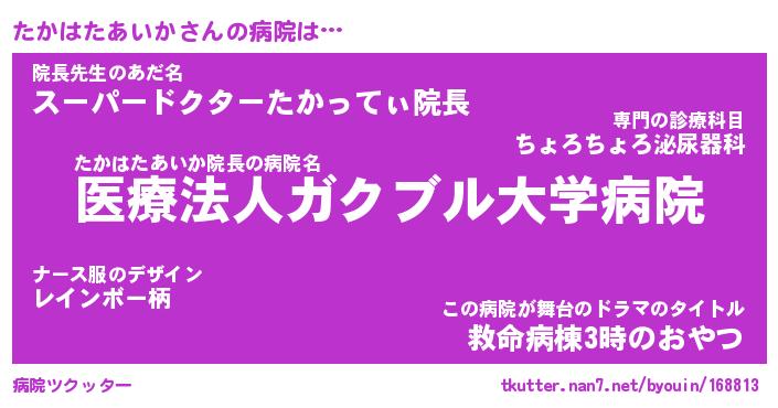 | ヘコむあだ名 | 『たかにゅー』『なまこ酢』 |