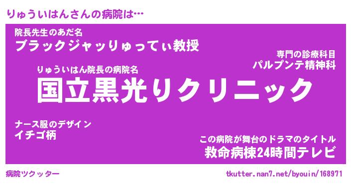 | 男性向けラノベタイトル風あだ名 | 『りゅういはんの憂鬱』 |