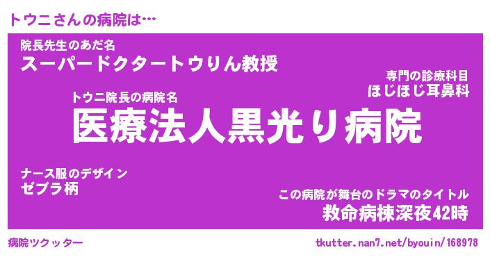 | ヒーロー風カッコイイあだ名 | 『スーパートウニ』『ウルトラトウニマン』 |