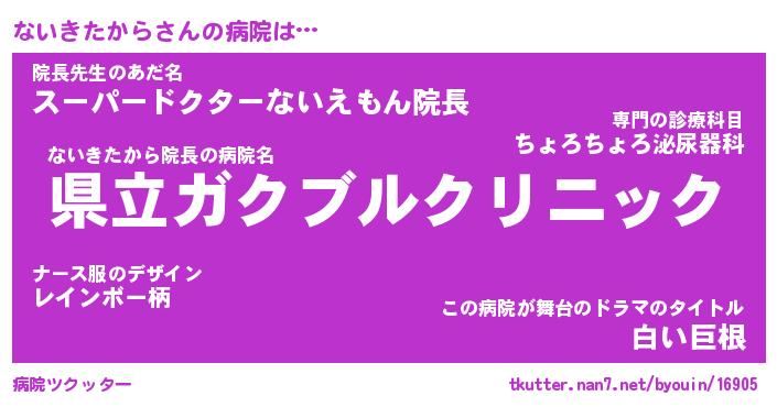 | 男性向けラノベタイトル風あだ名 | 『ないきたからの憂鬱』 |