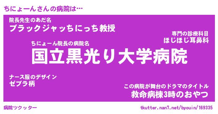 | 男性向けラノベタイトル風あだ名 | 『ちにょーんの憂鬱』 |