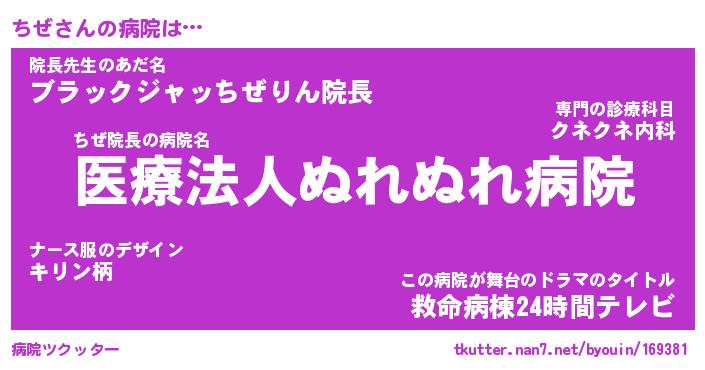 | ヘコむあだ名 | 『ちぜもー』『酢こんぶ』『ちぜっ子』 |