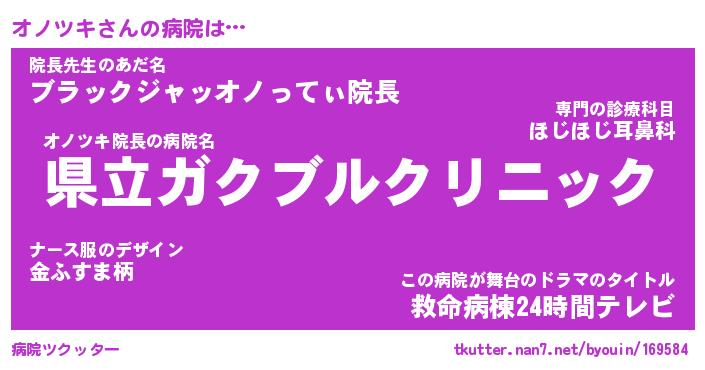 | 男性向けラノベタイトル風あだ名 | 『オノツキの憂鬱』 |