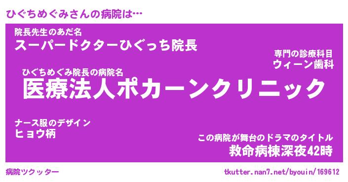 | 2回繰り返すあだ名 | 『ひぐひぐ』『ひひぐぐ』『ぬめぬめ』 |