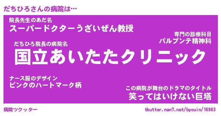 | 肩書あだ名 | 『だちひろ御曹司』『だちひろ総理大臣』 |