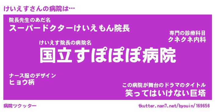 | 伝説のあだ名 | 『伝説のスナイパーけいえす』 |