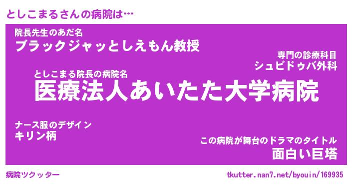| ファンタジー風あだ名 | 『トシフェル』『エターナルトシコマルー』 |