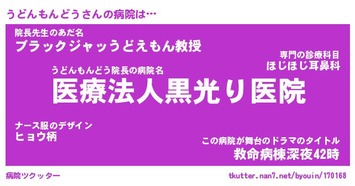 | ツイッター | うどんもんどうさんのツイッターID『namakemono_star』 |