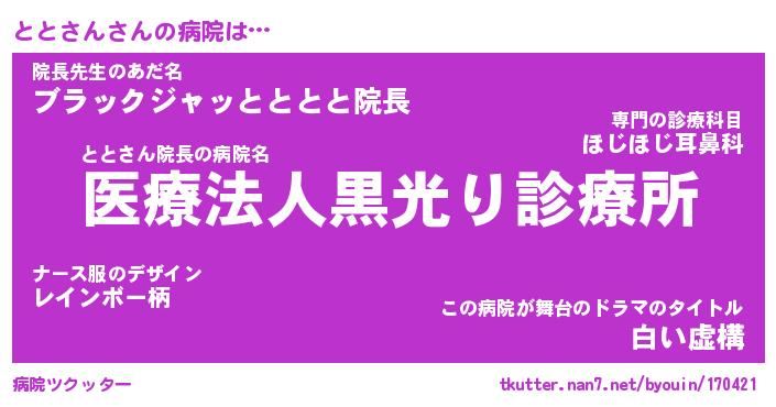 | 胡散臭い通販商品みたいなあだ名 | 『億万長者になれるブレスレット…その名も「ととさん」』 |