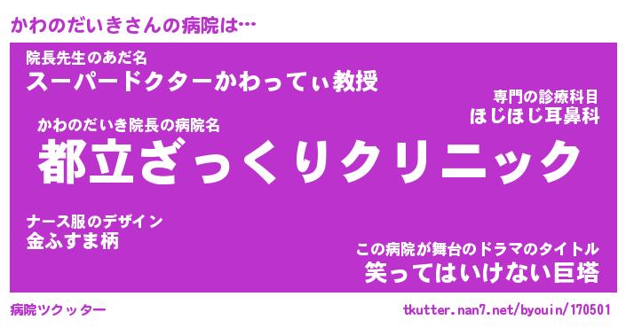 | ピコ太郎風あだ名 | 『カコ六郎』『ピカ史郎』『カワ三郎』 |