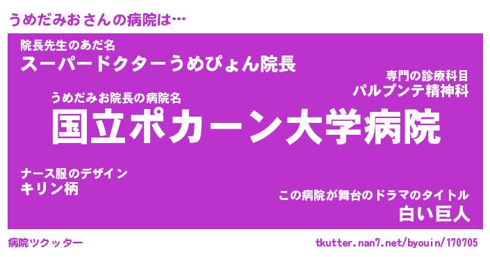 | ピコ太郎風あだ名 | 『ウコ四郎』『ピウ五郎』『ウメ次郎』 |
