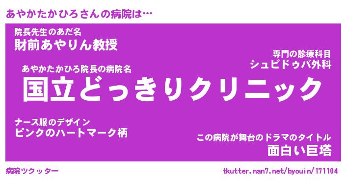 | 伝説のあだ名 | 『伝説のスナイパーあやかたかひろ』 |