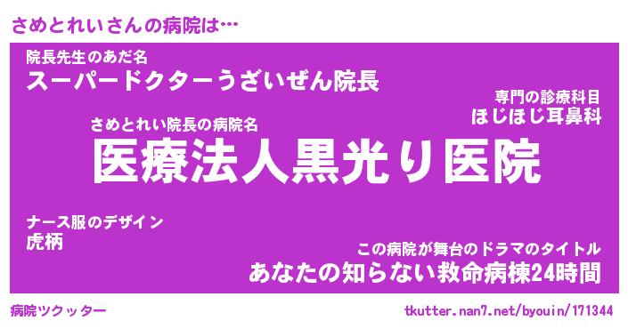 | 胡散臭い通販商品みたいなあだ名 | 『億万長者になれるブレスレット…その名も「さめとれい」』 |