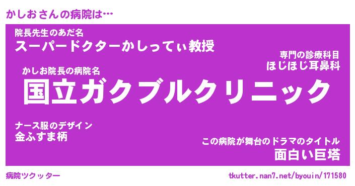 | 男性向けラノベタイトル風あだ名 | 『かしおの憂鬱』 |
