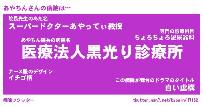 | ファンタジー風あだ名 | 『アヤフェル』『エターナルアヤチンー』 |