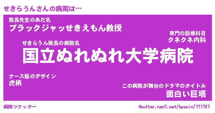 | 男性向けラノベタイトル風あだ名 | 『せきらうんの憂鬱』 |