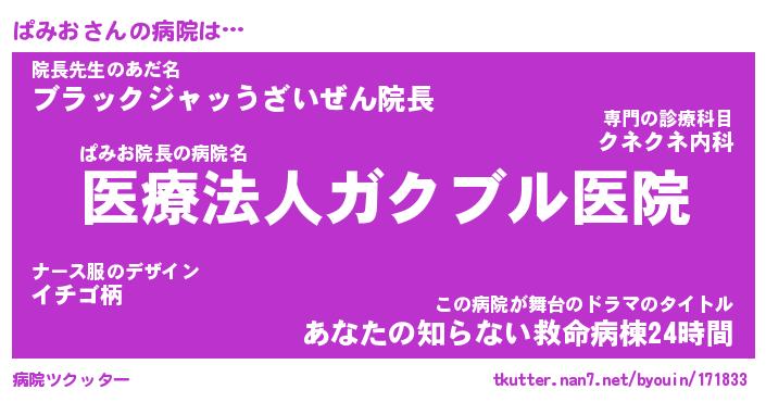 | 意味不明あだ名 | 『ペロリンぱみお』『ぱみおフォーエバー』 |