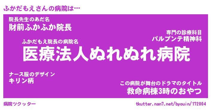 | 欧米人風あだ名 | 『マイケルふかだもえ』 |