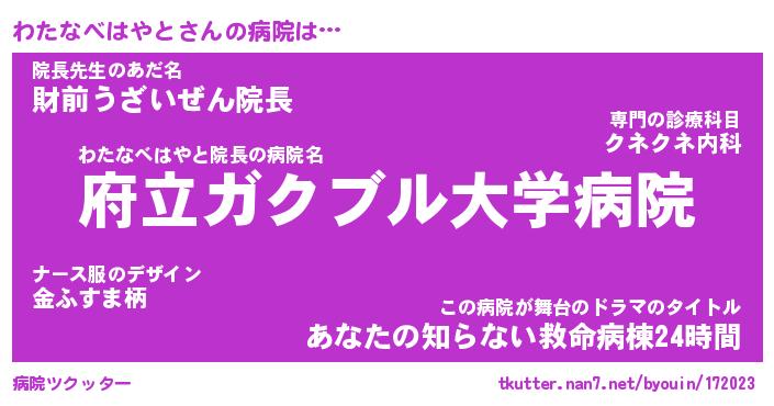 | 肩書あだ名 | 『わたなべはやと店長』 |