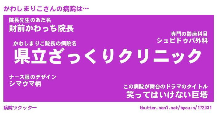 | 胡散臭い通販商品みたいなあだ名 | 『モテモテ間違いなし霊験あらたかなお札…その名も「かわしまりこ」』 |