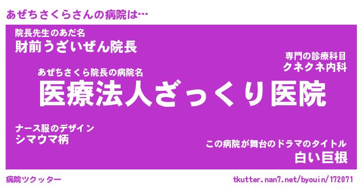 | 胡散臭い通販商品みたいなあだ名 | 『億万長者になれる霊験あらたかなお札…その名も「あぜちさくら」』 |
