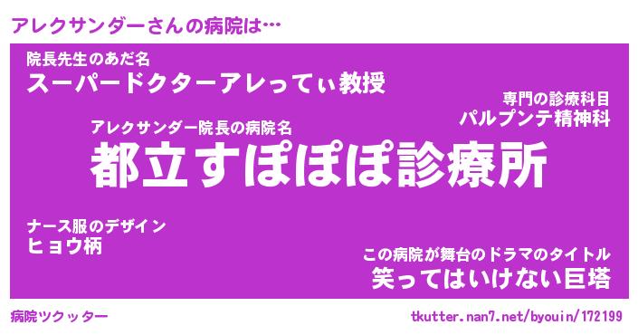 | 男性向けラノベタイトル風あだ名 | 『アレクサンダーアートオンライン』 |