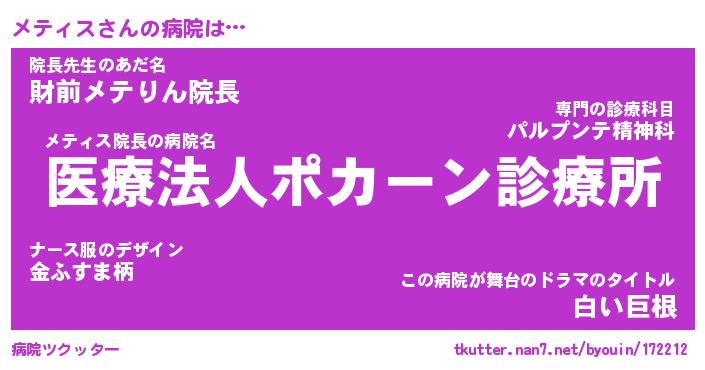 | ファンタジー風あだ名 | 『メテフェル』『エターナルメティスー』 |