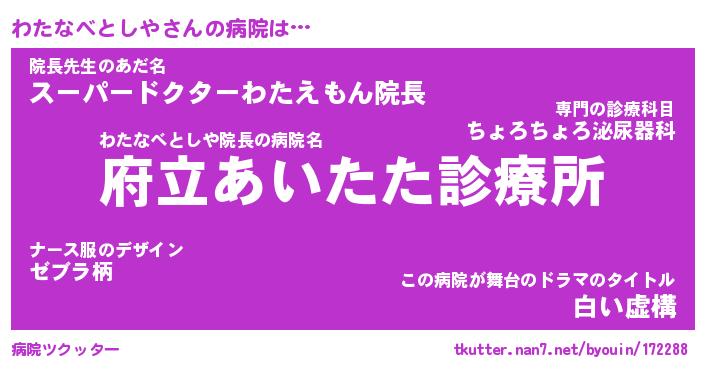 | 肩書あだ名 | 『わたなべとしや御曹司』 |