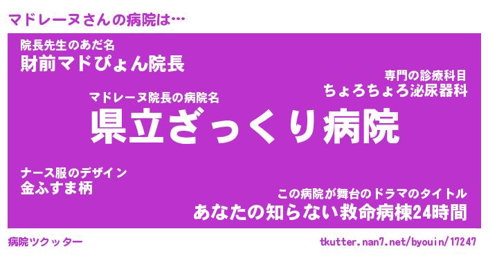 | ファンタジー風あだ名 | 『マドフェル』『エターナルマドレーヌー』 |